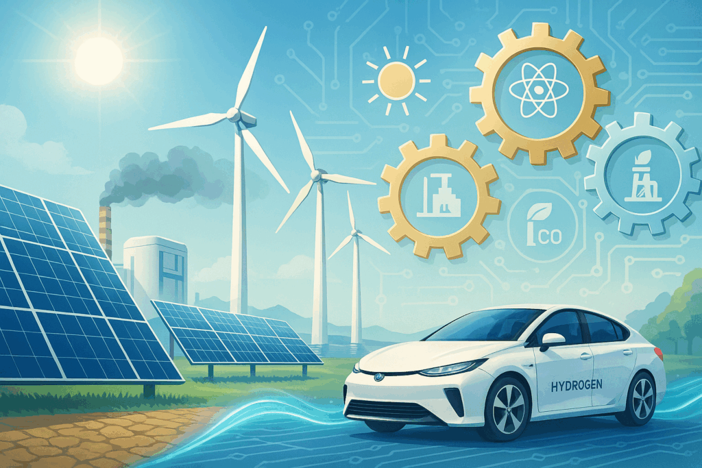 再生可能エネルギー由来の「グリーン水素」は燃焼時にCO₂を排出せず、製造・運輸・発電など多分野での活用が見込まれています。