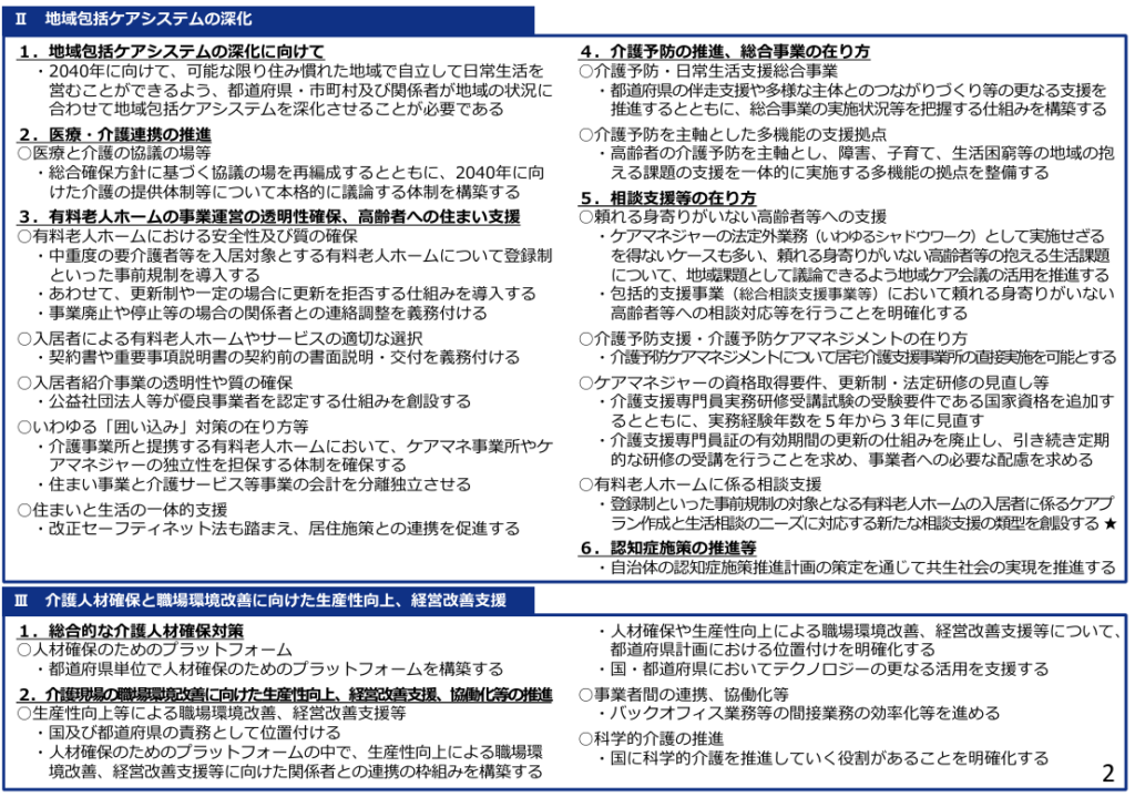 そして抜本的な介護保険制度改革の道と姿を提示することも、結局先送りに。