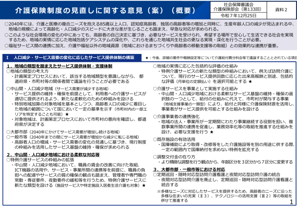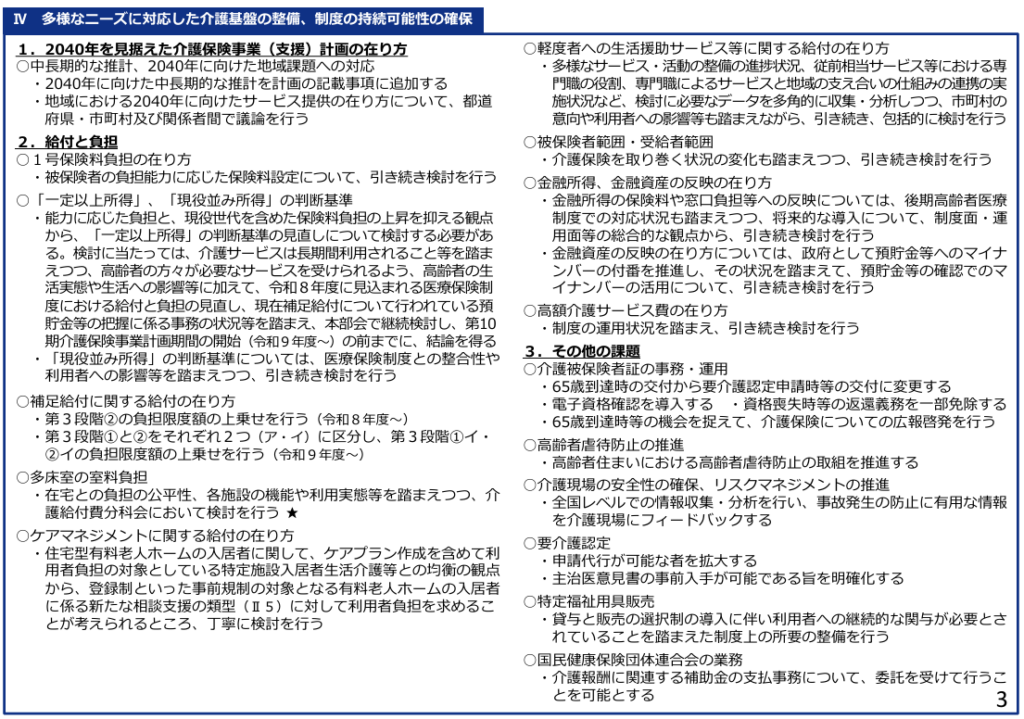 2025年12月介護保険部会「介護保険制度の見直しに関する意見書」からの3研究者の小論を考える