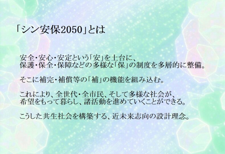 その中で「シン安保2050」は、日本社会の安定を支える基盤そのものを整理する理念として位置付けられます。