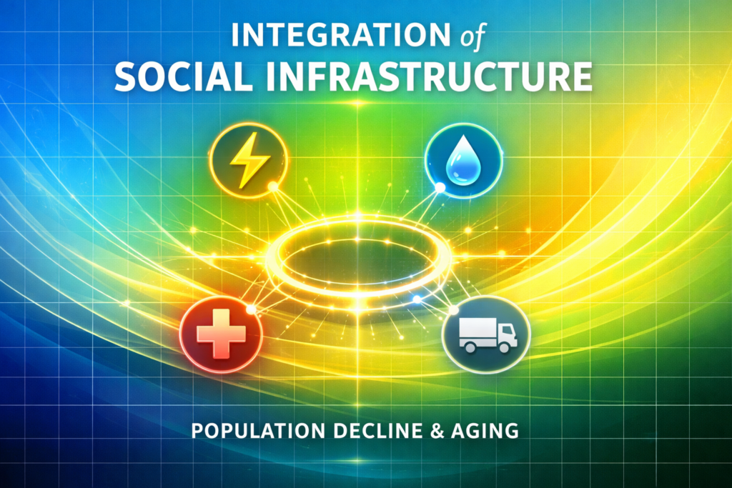 2050年に向かう人口減少社会では、上下水道、エネルギー、防災、物流、医療連携などの基盤を、複数自治体が共同で運営し、共同調達、共同監視、共同保守、共通システム化によって支える方向のほうが現実的です。
