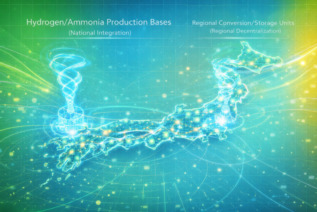 その骨格は、沿岸部の輸入・変換・備蓄・工業基盤と、地域内陸部の分散利用・生活維持・防災・地域循環基盤とを役割分担によって結び直す構造にあります。