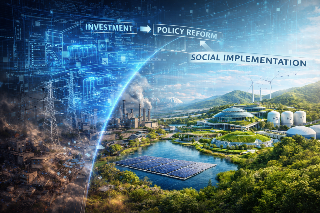 水素、アンモニア、合成燃料、CO2回収利用、金属循環、プラスチック循環、広域自治体協業、地域分散型基盤などは、そのための個別技術であり制度要素であり、同時に国家社会基盤再編の構成要素でもあります。